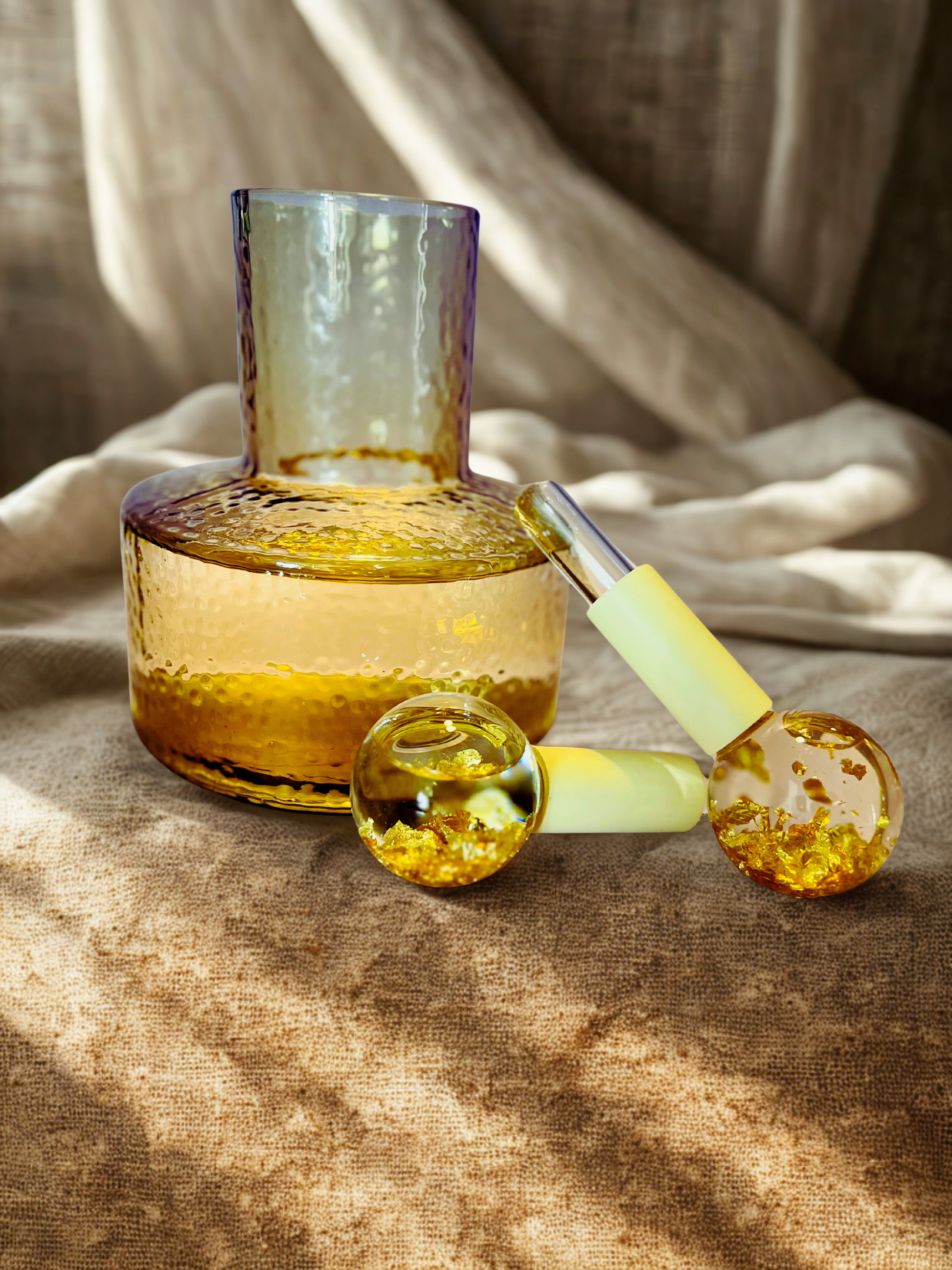 Facial roller globes—also known as ice globes or cryo globes—are skincare tools used to soothe, depuff, and tighten the skin. They're made of glass and filled with a liquid or gel that retains cold temperatures. Here's what they're great for: