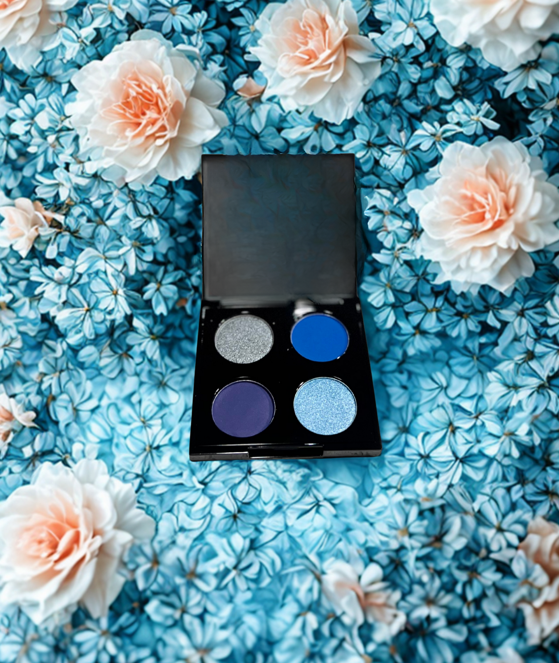 This Blue eyeshadow has shades that evoke a sense of regal elegance and sophistication. Imagine deep, luxurious colors like rich Sun like Royal, Sky blues and shimmering Silver. These colors often create a dramatic and glamorous look, perfect for special occasions or evening events. These eyeshadows are to be paired with bold eyeliner and voluminous lashes to complete the majestic effect. They add depth and intensity to the eyes, making them stand out with a touch of opulence and grandeur.
